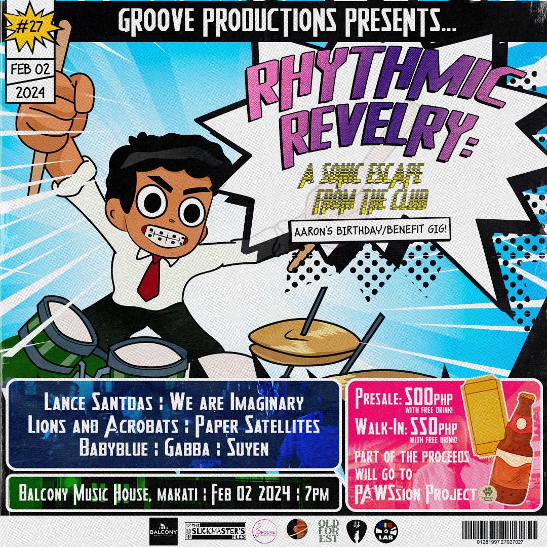 Mark your calendars for RHYTHMIC REVELRY: A Sonic Escape from the Club happening on Feb. 2 (Fri) at Balcony Music House in Makati City. The event, organized by Groove Productions, is in celebration of CEO Aaron's birthday. The show will feature performances by BABYBLUE, Lance Santdas, Paper Satellites, Gabba, SUYEN, Lions and Acrobats, and We Are Imaginary.