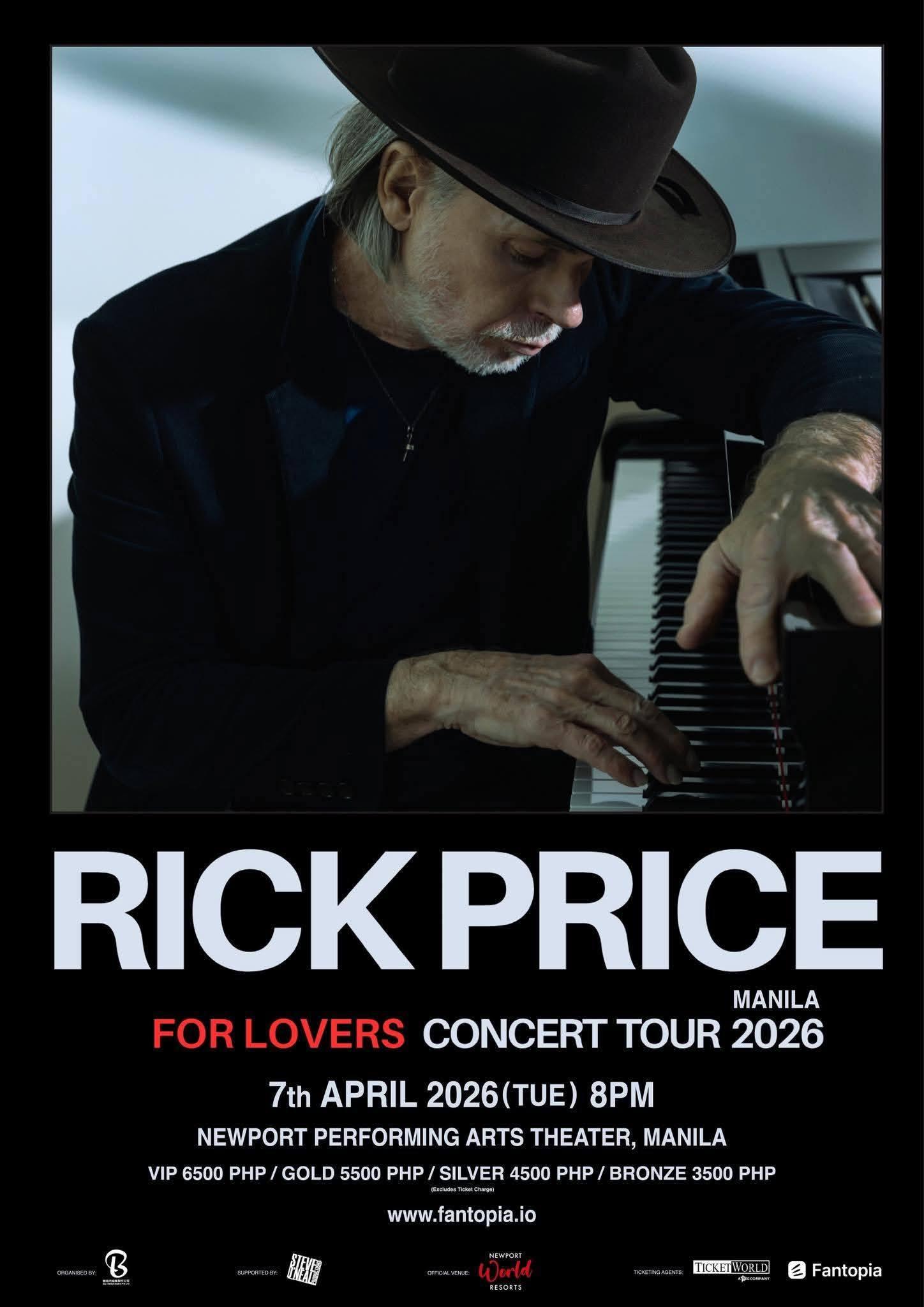 Rick Price returns to Manila for For Lovers Concert Tour 2026, taking place on April 7, 2026, at 8:00 PM at the Newport Performing Arts Theater. Joined by special guest issi, the concert delivers a romantic, nostalgia-filled night anchored by Price’s signature ballads and classic love songs adored across Asia and around the world.