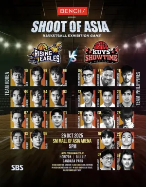 Catch the action at BENCH presents Shoot of Asia on Oct. 26 at SM Mall of Asia Arena, featuring Team Korea Rising Eagles vs. Team Philippines Kuys Showtime.