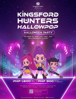 Celebrate K-Pop Demon Hunters Halloween at Kingsford Hotel Manila’s Kingsford Hunters on Oct. 25, featuring a Halloween snack buffet, trick-or-treat, and more!