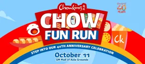 Chowking marks its 40th anniversary with the first-ever "Chow Fun Run" on Oct. 11 at the SM Mall of Asia Grounds. Runners can join the 1K Kiddie Run, 3K, 5K, 10K, or Virtual Run. It's a family-friendly event for all ages! After crossing the finish line, participants can indulge in Chowking’s signature dishes, special anniversary promos, freebies, and interactive experiences at Chow Fun Land. Registration is still open via Hyve Sport.