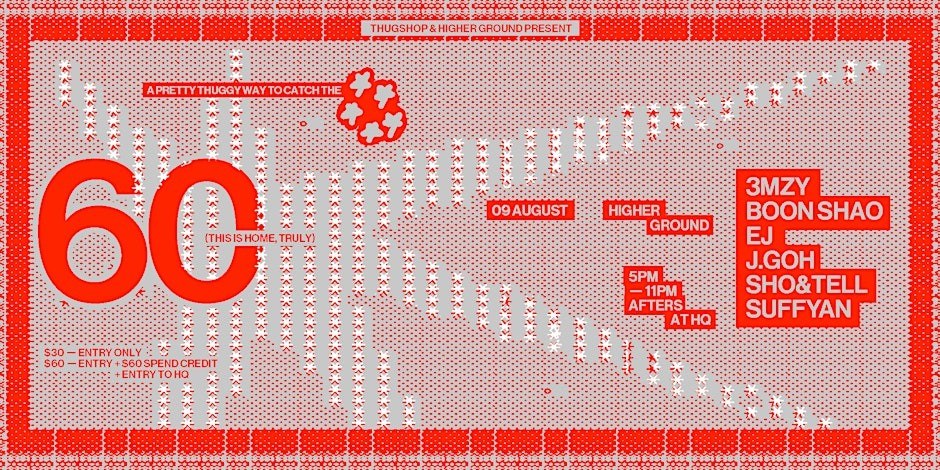 Kick off your National Day festivities with A Pretty Thuggy SG60, happening on Saturday, Aug. 9, 2025, from 5 PM to 11 PM at Higher Ground, 64 Boat Quay #04-00, Singapore. Presented by Higher Ground and Thugshop, this event is your go-to pre-game destination or the perfect spot for an early night out. Set in a prime riverside location, Higher Ground offers a stunning, unobstructed view of Singapore’s National Day fireworks.