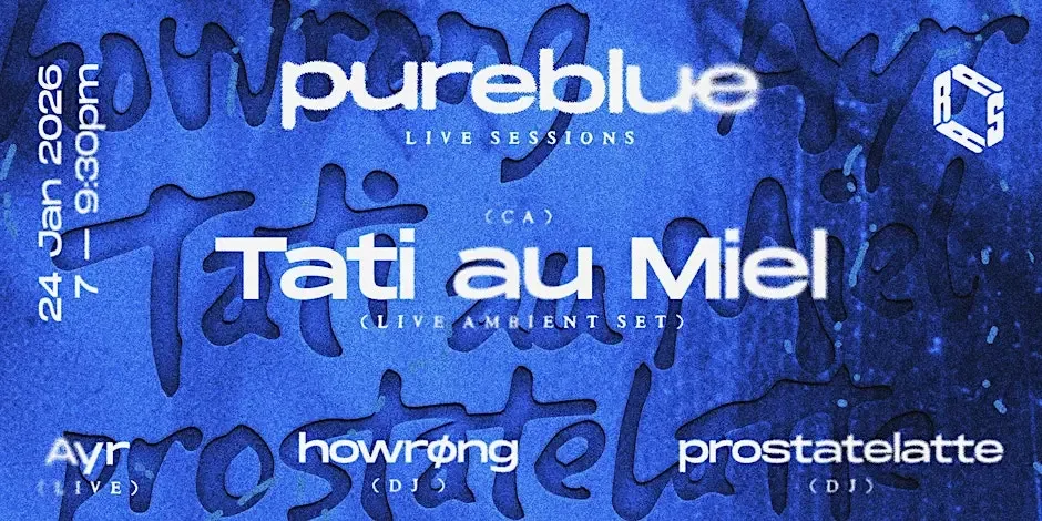 Experience an intimate evening of experimental sound as pureblue live sessions returns with a special showcase at RASA Space, Singapore, on Jan. 24, 2025, from 6:30 PM to 9:30 PM. Headlined by Montreal-born artist Tati au Miel, the night invites audiences into a deeply immersive sonic environment shaped by abstraction, storytelling, and sensory exploration.