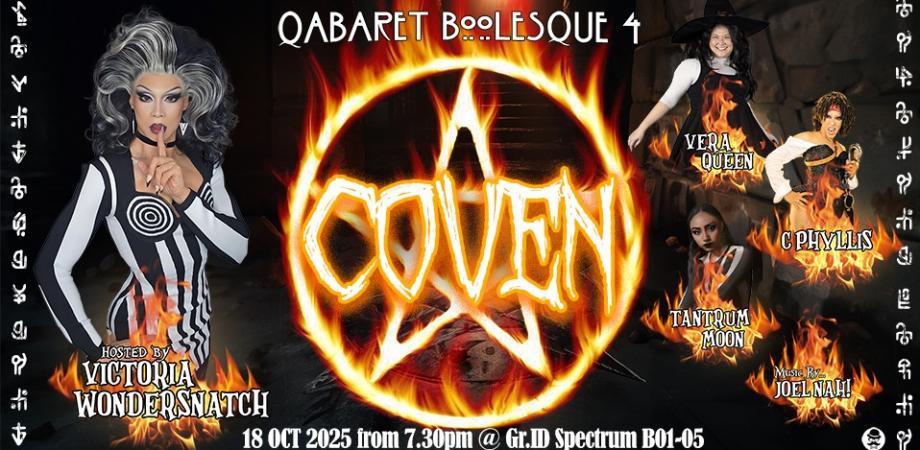 Expect live-singing drag performances, clever parodies, dazzling costumes, and a touch of magic as the performers brew up a storm on stage. The night features the sensational Victoria Wondersnatch, the mimicking marvel C Phyllis, the ethereal Tantrum Moon, and rising star Vera Queen, with musical direction by the talented Joel Nah. Come dressed in your best Halloween look and stand a chance to win fabulous prizes. With laughter, music, and wicked fun, QABARET Boolesque 4: COVEN promises a night that celebrates the divine feminine and the power of performance under the harvest moon.