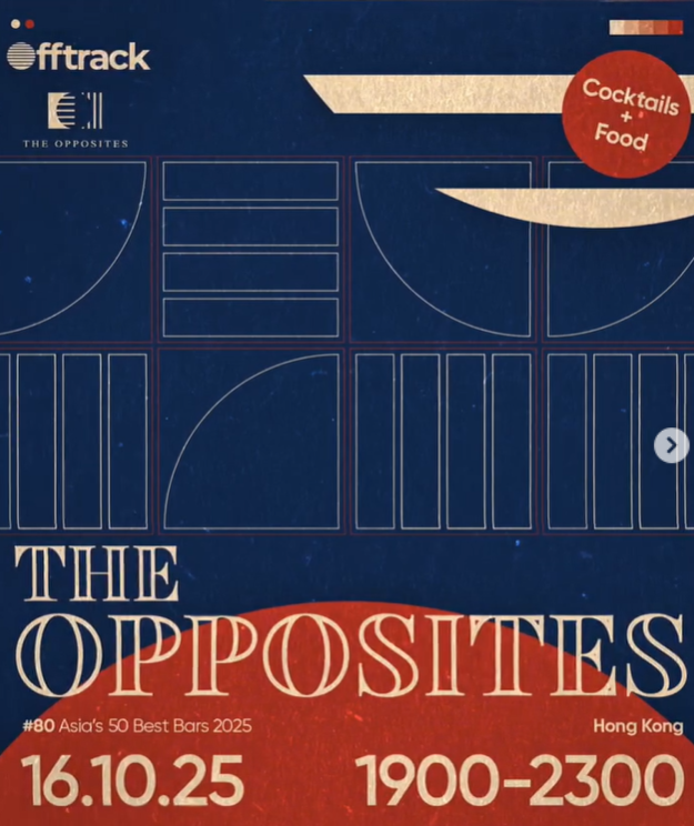 Experience the art of balance at The Opposites, happening on Thursday, Oct. 16, 2025, from 7 PM to 11 PM at Offtrack, 34 North Canal Road, Singapore. This exclusive pop-up unites @theoppositeshk co-founder Samuel Kwok and bartender Mabel Chan, two of Hong Kong’s most innovative mixologists, for an evening dedicated to creative craftsmanship and culinary finesse.