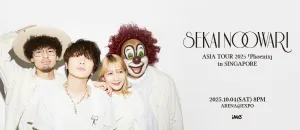 Experience the magic of Sekai No Owari live at their "Phoenix" Asia Tour 2025 on Oct. 4, from 8 PM, at Arena @ EXPO Singapore. The Tokyo-based band brings their signature blend of pop-rock and electronic sounds to the stage, performing hits like "RPG," "Habit," "Snow Magic Fantasy," and anime themes from "Attack on Titan" and "One Piece." Tickets are priced from S$168 to S$228, offering fans an unforgettable night of music, storytelling, and immersive visuals.